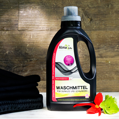Gerne möchte man die Farbintensität so beibehalten. Nicht alle Textilien sind aber dauerhaft eingefärbt und bluten daher beim Waschen etwas aus. Um dem entgegen zu wirken, kann man ein Schwarzwaschmittel verwenden. Die speziellen Waschmittel färben nicht ein, aber sie können die Farben schonen und die Fasern glätten. Beim AlmaWin Waschmittel für Dunkles und Schwarzes kommt ebenfalls das Waschnuss-Saponin in einer ganz besonderen Dosis zum Einsatz, so erscheinen Farben satter und Dunkles bleibt länger dunkel.