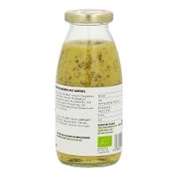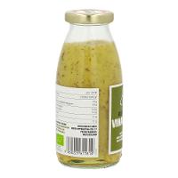 Rapsöl*, Wasser, 12 % SENF* (Wasser, SENFSAAT*, Apfelessig*, Steinsalz), 7% Weißweinessig*, Agavendicksaft*, Steinsalz, Zwiebel*, Knoblauch*, Petersilie*, Schnittlauch*| Energie | Fett | gesättigte Fettsäuren | Kohlenhydrate | Zucker | Eiweiss | Salz |